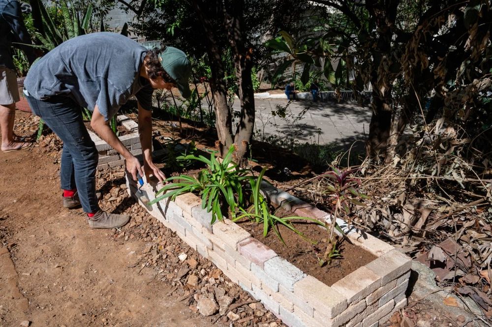 Como resultado da atividade previamente realizada no Canteiro Experimental da FAU Mackenzie em parceria com a Ocupação 9 de Julho, a RUÍNA Arquitetura propôs uma atividade prática utilizando os tijolos de entulho desenvolvidos junto com estudantes durante a disciplina “(Des)construir e Ocupar: o reuso como prática social e propositiva”, para a construção de dois canteiros na Horta da Ocupação. A atividade contou com participantes externos e moradores da Ocupação 9 de Julho.